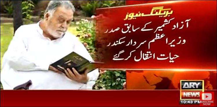 تفصیلات کے مطابق آزاد کشمیر کے سابق صدر، وزیراعظم سردارسکندرحیات اس دار فانی سے کوچ کرگئے، آزاد کشمیر کے زیرک سیاستدان کو چند روز قبل دل کا دورہ پڑا تھا، جس کے باعث وہ کوٹلی کے اسپتال میں زیر علاج تھے جہاں وہ آج اپنے خالق حقیقی سے جاملے۔
