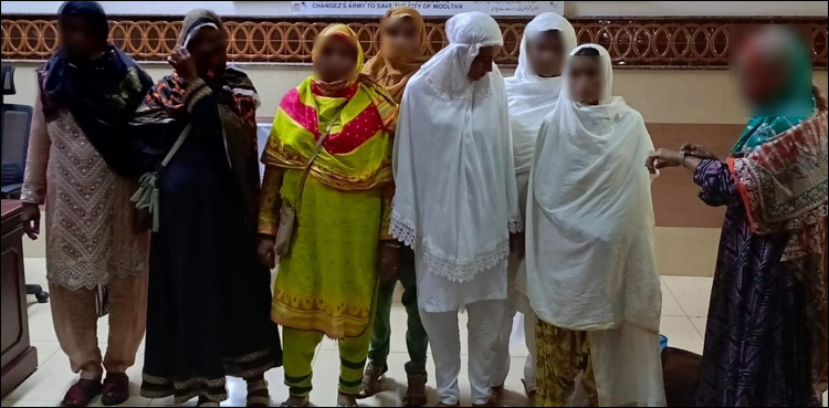 ملزمان میں سوبا بی بی، خدیجہ بی بی، آسیا بی بی، سائرہ بی بی، ساجدہ بی بی، سلما بی بی، سمینا بی بی اور نغمہ بی بی شامل ہیں، بتایا گیا ہے کہ گرفتار خواتین بہ ظاہر عمرے کے غرض سے سعودی عرب جا رہی تھیں، تاہم ابتدائی تفتیش میں معلوم ہوا کہ خواتین سعودی عرب میں بھیک مانگنے جا رہی تھیں۔