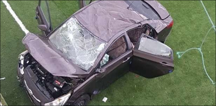 عرب میڈیا کے مطابق فٹبال اسٹیڈیم میں کھلاڑی اور شائقین کھیل میں مصروف تھے کہ اچانک زور دار آواز نے سب کو اپنی جانب متوجہ کرلیا، لوگ یہ دیکھ کر حیران رہ گئے کہ اسٹیڈیم میں اوپر سے ایک گاڑی آکر گری ہے۔