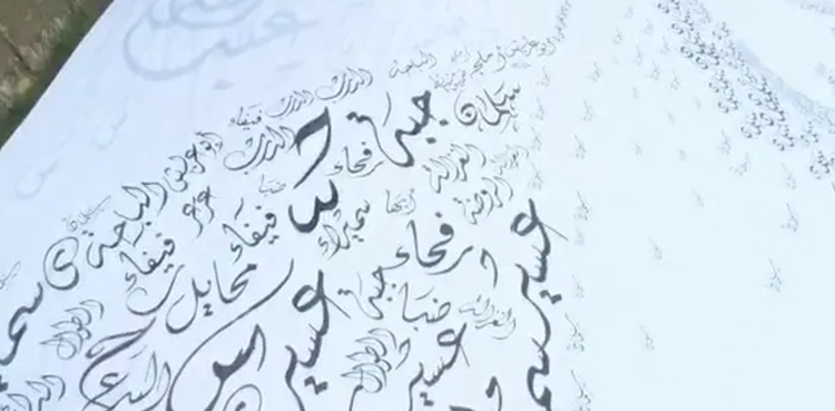 رپورٹ میں بتایا گیا کہ عربی رسم الخط سے تیار کردہ فن پارہ 30 میٹر اونچا اور 20 میٹر چوڑا ہے، اسے مکمل کرنے میں ڈیڑھ برس کا عرصہ لگا۔