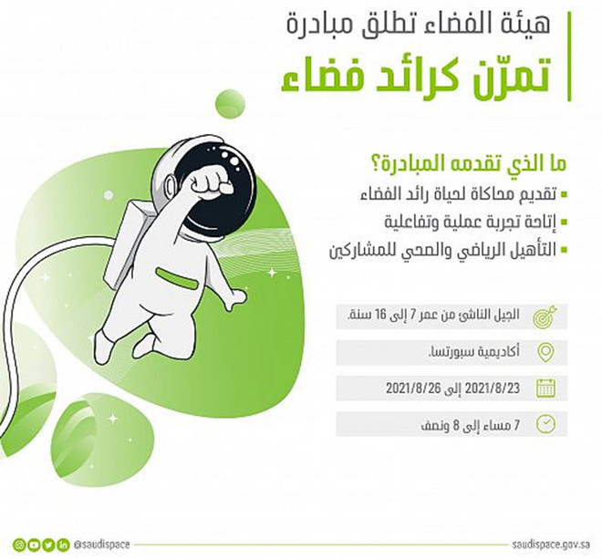 عرب میڈیا کی رپورٹ کے مطابق سعودی عرب کے اسپیس کمیشن(سعودی خلائی ادارہ) نے مملکت میں خلا نوردی کے حوالے سے تربیت فراہم کرنے کیلئے خصوصی پروگرام کا آغاز کیا ہے۔