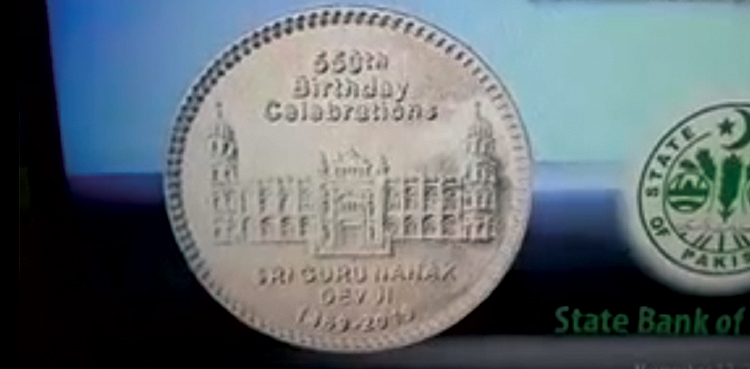 پاکستان کی جانب سے باباگرو نانک کی 550ویں سالگرہ پر یادگاری ٹکٹ اور یادگاری سکہ جاری کیا گیا تھا، یادگاری سکہ 50 روپے مالیت کا تھا، سکے کے ایک رُخ پر اسلامی جمہوریہ پاکستان اور قومی نشان ہے جبکہ دوسرے رُخ پر سکھوں کی عبادت گاہ کی تصویر کندہ ہے، یادگاری سکے پر گرونانک دیو جی 1469-2019 کے الفاظ کندہ ہیں۔