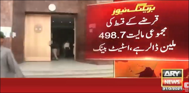 اسٹیٹ بینک آف پاکستان کے ترجمان نے تصدیق کی کہ آئی ایم ایف سے500 ملین ڈالرقرض کی قسط منگل تیس مارچ کو موصول ہوئی ہے۔