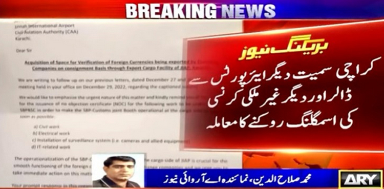 ملک سے ڈالر سمیت غیر ملکی کرنسی اسمگلنگ میں تیزی کے بعد اسٹیٹ بینک نے سی اے اے شعبہ کارگو میں بوتھ قائم کرنے کا فیصلہ کیا۔