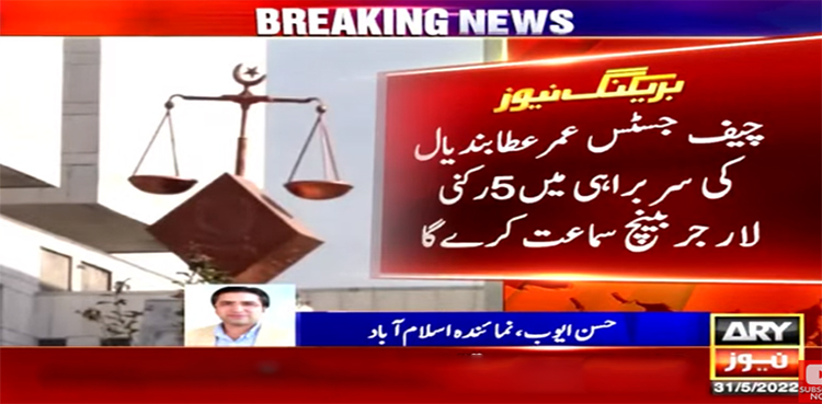 اے آر وائی نیوز کے مطابق سپریم کورٹ میں حکومتی شخصیات کی فوجداری مقدمات میں مبینہ مداخلت پر ازخود نوٹس کی سماعت تین جون کو ہوگی،چیف جسٹس عمرعطابندیال کی سربراہی میں پانچ رکنی لارجربینچ سماعت کرےگا۔