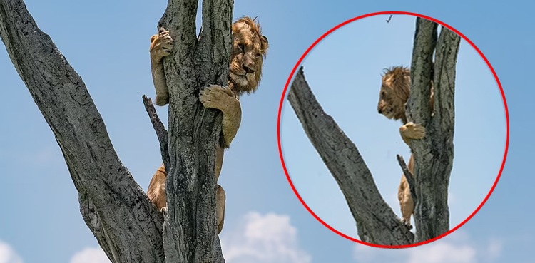 جی ہاں، ایسا ہی کچھ افریقی ملک کینیا میں دیکھا گیا جہاں ببر شیر جنگلی بھینسوں سے اپنی جان بچانے کے لیے درخت پر چڑھ گیا۔ ماجرا یہ ہے کہ شیراپنے دیگر چار ساتھیوں کے ہمراہ بھینسوں کا شکار کررہے تھے لیکن ان کی منصوبہ بندی ناکام ہوئی جس کے باعث دیگر شیر فرار اور ایک درخت پر چڑھ گیا۔
