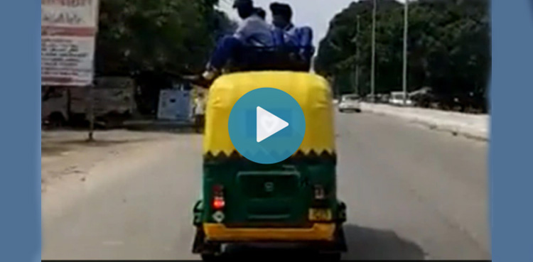 وائرل ویڈیو میں دیکھا جاسکتا ہے کہ اسکول کے بچوں کو آٹو رکشہ کی چھت کے اوپر خطرناک طریقے سے بٹھایا گیا ہے جو کسی وقت بھی بڑے حادثے کی وجہ بن سکتا ہے۔