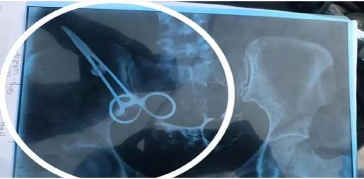 سی ٹی اسکین سے پتہ چلا کہ پیٹ میں کوئی دھاتی چیز موجود ہے بعد ازاں تصدیق ہوئی کہ وہ دھاتی چیز آپریشن میں استعمال ہونے والی قینچی ہے۔