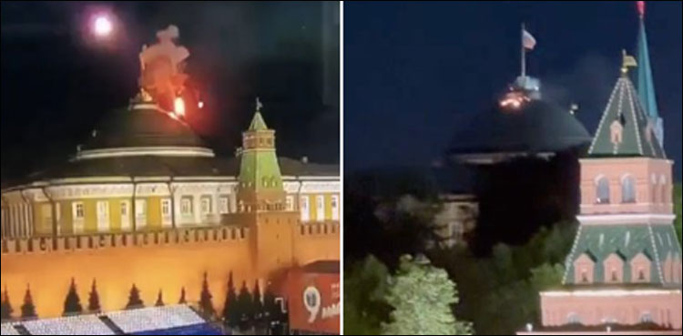 روس نے کریملن پر ڈرون حملے کو روسی صدر کو مارنے کی کوشش قرار دیا ہے، سوشل میڈیا پر گردش کرتی ویڈیوز میں کریملن کے اوپر دھوئیں کے بادل دیکھے جا سکتے ہیں۔