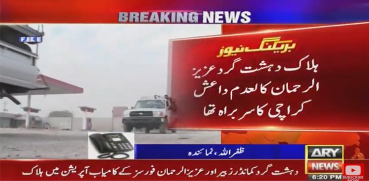 سیکیورٹی ذرائع کے مطابق ہلاک دہشت گرد عزیز الرحمان کالعدم داعش کراچی کا سربراہ تھا۔