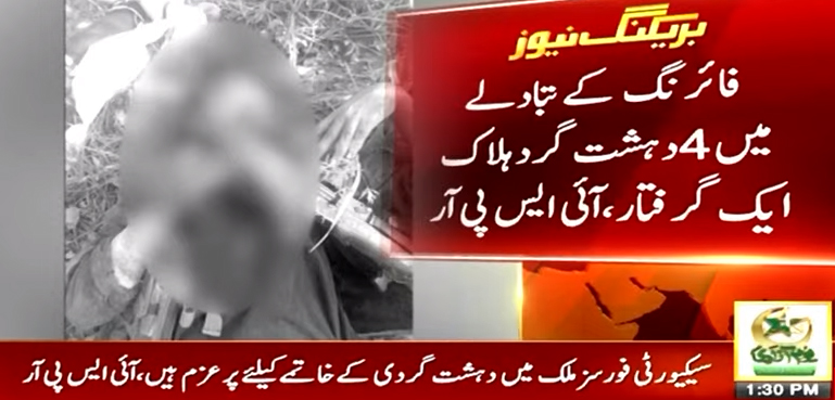 آئی ایس پی آر کے مطابق باجوڑ کے علاقے چارمنگ میں خفیہ اطلاع پر آپریشن کیا جس میں سیکیورٹی فورسز اور دہشتگردوں کے درمیان فائرنگ کا تبادلہ ہوا اور اس میں چار دہشتگرد ہلاک جب کہ ایک کو گرفتار کرلیا گیا۔