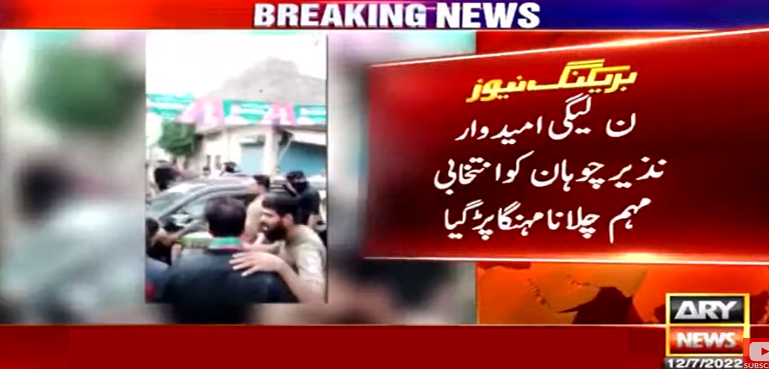 سخت ترین عوامی ردعمل کے بعد ن لیگی امیدوار نذیر چوہان کارنر میٹنگ چھوڑ کر وہاں سے چلے گئے اور موقع پر موجود پولیس کی بھاری نفری نے انہیں ہجوم سے باہر نکالا۔