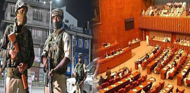 اسلام آباد: پاکستان کشمیر میں جاری بھارتی بربریت کی شدیدالفاظ میں مذمت کرتا ہے، سینیٹ میں کشمیریوں سے اظہار یکجہتی کی قرارداد منظور کرلی گئی ہے۔
