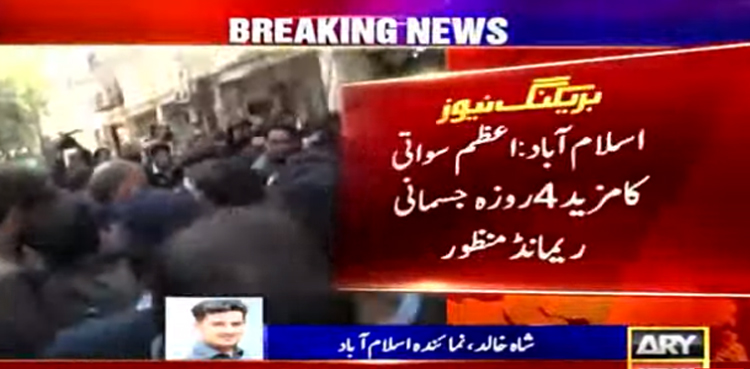 یاد رہے دو روز قبل عدالت نے اعظم سواتی کا دو روزہ جسمانی ریمانڈ منظور کیا تھا۔