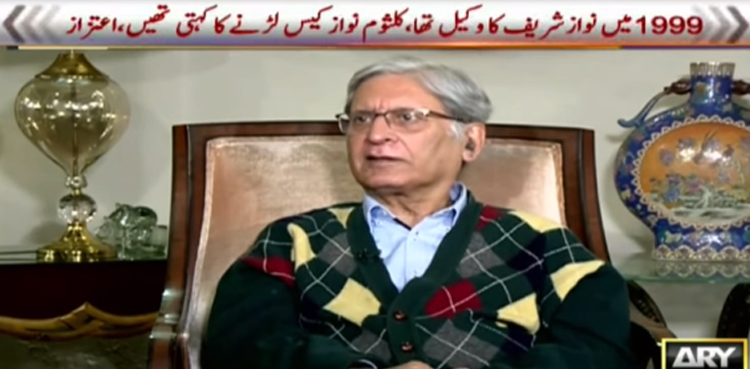 اسلام آباد : سینئرقانون دان اعتزاز احسن نے اہم رازوں سے پردہ اٹھاتے ہوئے کہا 1999 میں نوازشریف کا وکیل تھا ، نوازشریف کہتے تھے لڑیں گے مریں گے لیکن وہ ڈیل کر کے ملک سےبھاگ گئے۔