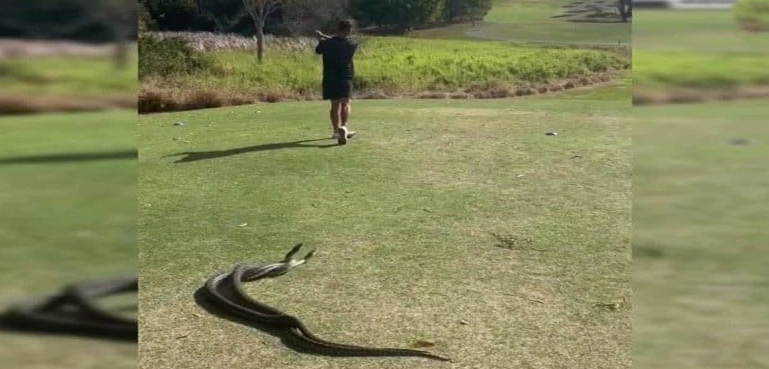 سانپ ایک انتہائی زیریلا موذی جانور ہے اور اگر کسی عام شخص کے سامنے سانپ کیا اس کا ذکر بھی آ جائے تو ہو سکتا ہے کہ مارے خوف کے اس کے رونگٹے کھڑے ہو جائیں لیکن آسٹریلیا میں دو بڑے سانپ میدان میں لڑ پڑے لیکن وہاں گولف کھیلنے دلیر نوجوان کے کانوں پر جوں تک نہیں رینگی۔