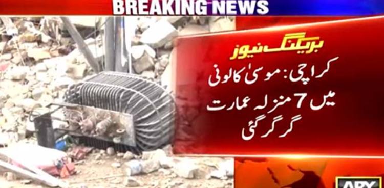 تفصیلات کے مطابق کراچی کے علاقے موسیٰ کالونی میں 7 منزلہ عمارت گر گئی، 40 گز پر 7 منزلہ عمارت تعمیر کی گئی تھی۔