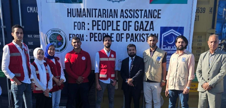 قاہرہ میں قائم پاکستان سفارتخانے کے مطابق پاکستان سے پہنچنے والی امداد کی یہ ساتویں کھیپ مصر میں پورٹ سعید پر پہنچنے کے بعد مصفری ریڈ کریسٹن کے حوالے کر دی گئی ہے۔