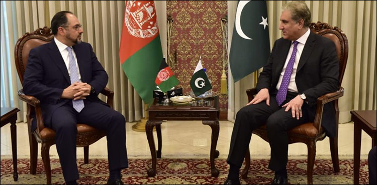 تفصیلات کے مطابق شاہ محمود قریشی نے افغان ہم منصب کو پاکستان آمد پر خوش آمدید کہا، دونوں وزرائے خارجہ کے مابین ملاقات میں خطے بالخصوص افغانستان کے امن معاملے پر تفصیلی بات چیت کی گئی۔