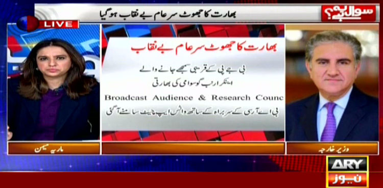 اے آر وائی نیوز کے پروگرام ’سوال یہ ہے‘ میں گفتگو کرتے ہوئے وزیر خارجہ شاہ محمود قریشی نے کہا کہ پلوامہ کے واقعے کو پاکستان نے رد کیا تھا ، بتادیا تھا کہ بھارت اس کی آڑ میں چال چل سکتا ہے، اب ساری قلعی کھل گئی ہے۔