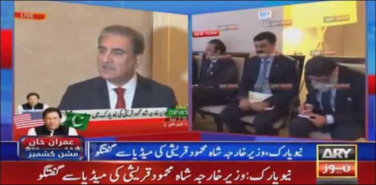 تفصیلات کے مطابق وزیر خارجہ شاہ محمود قریشی نے نیویارک میں میڈیا سے گفتگو کرتے ہوئے کہا کہ مودی کے اقدامات اقوام متحدہ عالمی قوانین کی خلاف ورزی ہے، وزیراعظم جنرل اسمبلی میں کشمیریوں کا مقدمہ پیش کریں گے۔