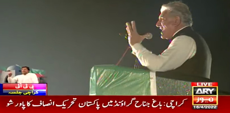 ان کا کہنا تھا کہ ہم پی ٹی آئی کے پلیٹ فارم سے لسانیت اور تعصب ختم کریں گے، ہم پی ٹی آئی کے پلیٹ فارم سے پاکستانیت کو لے کر چلیں گے، آج فیصلہ کرلیں اب سندھ کارڈ نہیں پاکستان کارڈ چلے گا، اللہ کے بعد سب سے بڑی کچہری عوام کی کچہری ہے۔