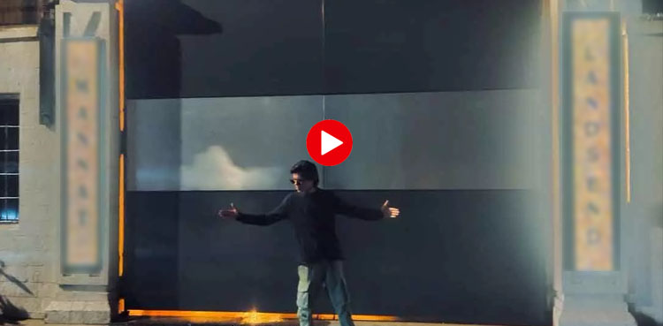 ویڈیو اور تصاویر میں دیکھا جاسکتا ہے کہ ’شاہ رخ کے گھر کے باہر لگی نام کی تختی جگمگا رہی ہے اوپر ان کے گھر کا نام ’منت‘ بھی واضح طور پر دیکھا جاسکتا ہے۔