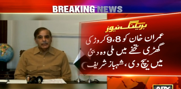 شہباز شریف نے الزام عائد کیا کہ عمران خان کو 9،8 کروڑ کی گھڑی ملی وہ دبئی میں بیچ دی ، عمران خان نے ایک ہار اور انگوٹھی بھی بیچ دی۔