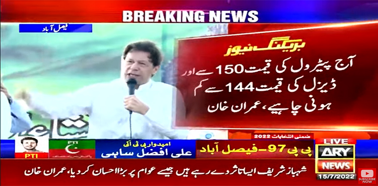 عمران خان نے کہا کہ آئی ایم ایف نےہم پربھی زورلگایاکہ قیمتیں بڑھاؤہم نےنہیں بڑھائیں ہم نے اس لیے قیمتیں نہیں بڑھائیں کیونکہ ہمارا جینا مرنا پاکستان میں ہے ان لوگوں کا سارا ٹبر باہر ہے صرف ایک ریڈیو آکاشوانی کو پاکستان میں چھوڑا ہوا ہے ریڈیوآکاشوانی کی خاصیت یہ ہےکہ وہ کبھی سچ بول ہی نہیں سکتا لندن کےمہنگےعلاقےمیں یہ رہتےہیں آج تک نہیں بتاسکےپیسہ کہاں سے آیا۔