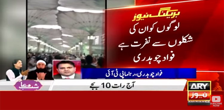 فوادچوہدری نے کہا کہ مسجدنبویؐ میں بھی ان کواحساس ہو گیا ہو گا کہ لوگ ان کے بارے میں کیا سوچتے ہیں لوگوں نے مسجدنبویؐ میں بھی ان کا پیچھا کیا اندازہ لگا سکتے ہیں۔