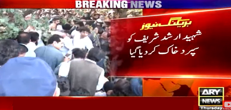شہید صحافت ارشد شریف کو وفاقی دارالحکومت اسلام آباد کے ایچ الیون قبرستان میں ان کے والد اور شہید بھائی کے پہلو میں سپرد خاک کردیا گیا۔