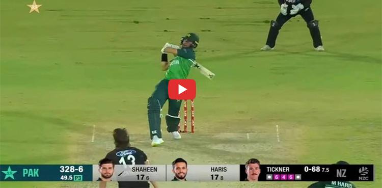 نیوزی لینڈ کے خلاف چوتھے ون ڈے میں شاہین آفریدی نے دھواں دھار باری کھیلتے ہوئے 7 گیندوں پر 23 رنز کر مجموعے کو 334 تک پہنچا دیا۔