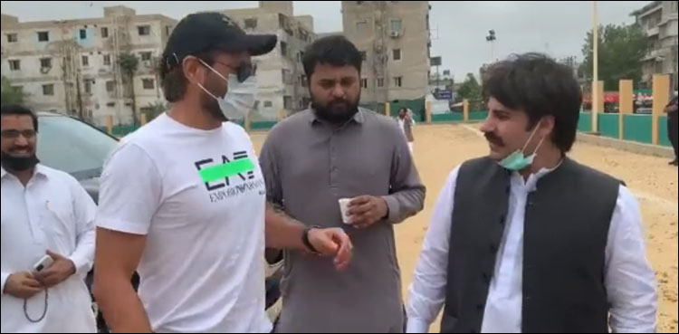 معروف کرکٹر و سابق کپتان شاہد خان آفریدی کا گلشن اقبال بلاک ۶ میں وزیراعظم عمران خان کے خصوصی فنڈز سے بنائے جانے والے کرکٹ گراؤنڈ کا دورہ#PTIRestoringNA243 #PTIOwnsKarachi pic.twitter.com/cA14uXaeIr