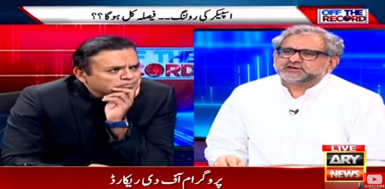 اے آر وائی نیوز کے پروگرام ’آف دی ریکارڈ‘ میں گفتگو کرتے ہوئے مسلم لیگ ن کے سینئر رہنما شاہد خاقان عباسی نے کہا کہ عسکری قیادت بتادے کیا سازش میں اپوزیشن ملوث ہے، حکومت کی ملی بھگت سے آئین توڑا گیا ہے ان پر آرٹیکل 6 لگائیں۔