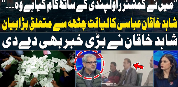 اے آر وائی نیوز کے پروگرام سوال یہ ہے میں گفتگو کرتے ہوئے شاہد خاقان عباسی نے کہا کہ کمشنر کہہ رہا ہے میں نےآئین توڑا الیکشن میں چوری کی ہے عوام کی مینڈیٹ کی نفی کی ہے،  کیا کسی نےکمشنر سے پوچھا ایسا کیوں کررہے تھے؟