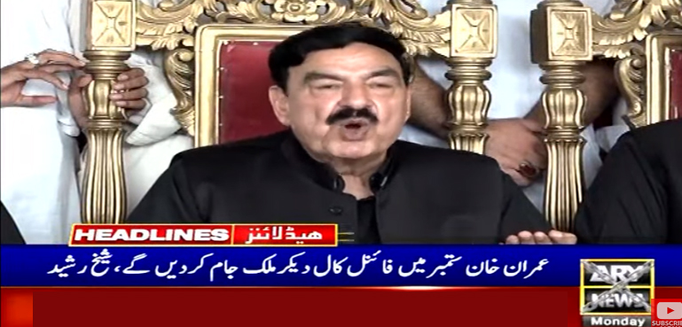 عوامی مسلم لیگ کے سربراہ شیخ رشید نے دعویٰ کیا ہے کہ پی ٹی آئی چیئرمین عمران خان ستمبر میں فائنل کال دے کر ملک جام کردیں گے۔