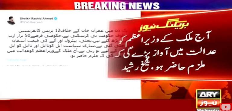 عوامی مسلم لیگ کے سربراہ اور سابق وفاقی وزیر شیخ رشید احمد نے ایک بار پھر حکومت کو کڑی تنقید کا نشانہ بناتے ہوئے سماجی رابطوں کی ویب سائٹ ٹوئٹر پر اپنے ردعمل کا اظہار کیا ہے۔
