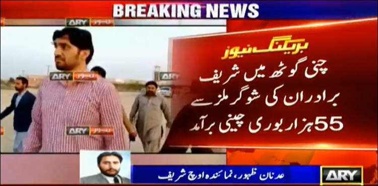 اے آر وائی نیوز کے مطابق اوچ شریف میں ضلعی انتظامیہ نے شریف برادران کی اتفاق شوگر ملز پر چھاپہ مار کر چینی کی 55 ہزار بوریاں برآمد کرلیں۔