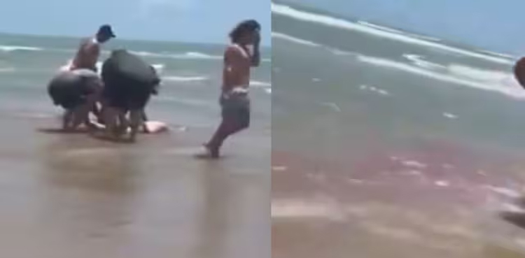 سوشل میڈیا پلیٹ فارم ایکس پر شیئر کی گئی ویڈیو میں دکھایا گیا ہے کہ ساحل کے قریب سمندری پانی متاثرہ کے زخم سے خون نکلنے سے سرخ ہو گیا ہے۔