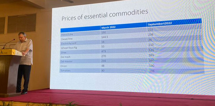 تفصیلات کے مطابق اسلام آباد میں منعقدہ تقریب سے خطاب کرتے ہوئے شوکت ترین نے کہا کہ فوڈ سیکیورٹی اور بڑھتی مہنگائی نےعوام کی کمرتوڑدی، ہمارے دورمیں مہنگائی کی 12.2فیصدتھی جو اب27.3فیصد تک جاپہنچی ہے، یہ لوگ چار سال رہ گئےتوہمارا اللہ ہی حافظ ہوگا۔