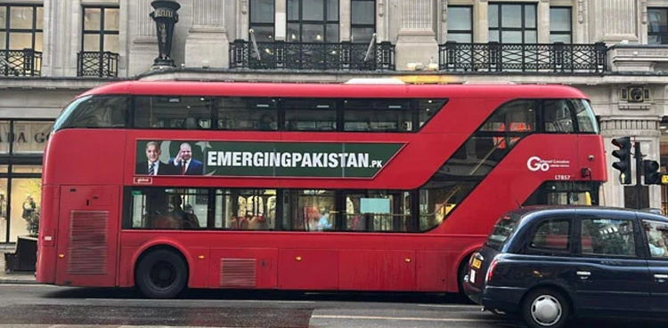 خیال رہے کہ گزشتہ روز لندن سے ویڈیوز سامنے آئی تھیں جس میں ڈبل ڈیکر بسوں پر پاکستان کے وزیر اعظم شہباز شریف اور مسلم لیگ (ن) کے قائد نواز شریف کی تصاویر کے ساتھ ”ابھرتا ہوا پاکستان“ کا نعرہ درج تھا۔