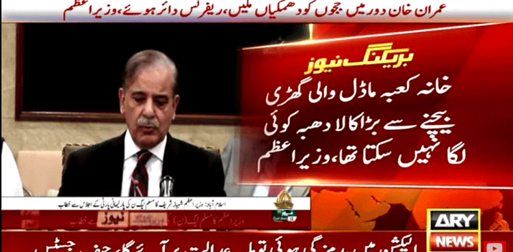 اسلام آباد: وزیر اعظم پاکستان نے کہا ہے کہ خانہ کعبہ ماڈل والی گھڑی بیچنے سے بڑا کالا دھبہ کوئی لگا نہیں سکتا تھا، عمران اور حواریوں نے دوست ممالک کے خلاف بدزبانی کر کے پاکستان کو معاشی دلدل میں پھنسایا۔