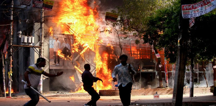 ڈھاکہ: غیرملکی نشریاتی ادارے نے بتایا ہے کہ بنگلہ دیش میں گلیوں میں اب بھی ہزاروں لوگ موجود ہیں اور ہنگامہ آرائی جاری ہے۔