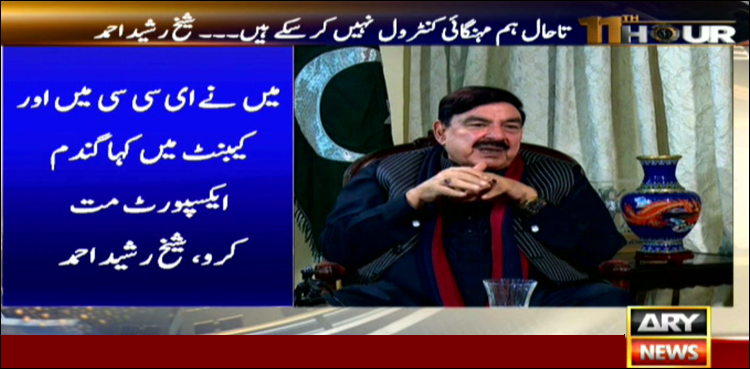 اے آر وائی نیوز کے پروگرام ’’الیونتھ آور‘‘ میں گفتگو کرتے ہوئے شیخ رشید نے کہا کہ ریلوے میں سیاست سے حکومت بن رہی ہے نہ گر رہی ہے، آج سپریم کورٹ میں ریلوے سے متعلق وضاحت پیش کریں گے، عمران خان کے دور میں کرپشن نہیں بلکہ کابینہ بھی کرپشن سے پاک ہے، عمران خان میں خامیاں ہوسکتی ہیں لیکن کرپشن سے پاک ہیں۔