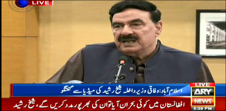 اسلام آباد: وفاقی وزیر داخلہ شیخ رشید احمد نے کہا ہے کہ افغانستان میں اگر کوئی بحران آیا تو پاکستان بھرپور مدد کرے گا۔