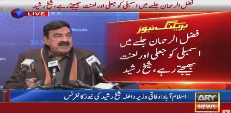 اے آر وائی نیوز کی رپورٹ کے مطابق وزیر داخلہ شیخ رشید نے نیوز کانفرنس کرتے ہوئے کہا کہ پی ڈی ایم ناکام ہوچکی اب یہ بے نقاب بھی ہورہے ہیں، یہ لوگ پاک فوج کے خلاف بھی غلط زبان استعمال کرتے ہیں، جو غیرپارلیمانی اورغیر اخلاقی بات کرے گا معاف نہیں کیا جائے گا۔