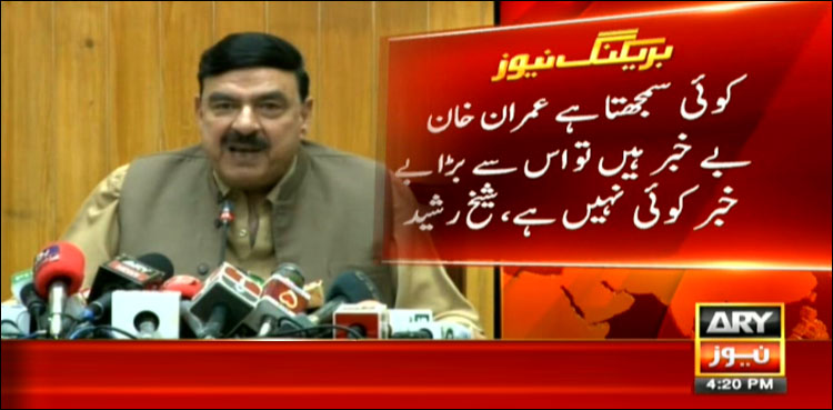 شیخ رشید نے کہا کہ عمران خان بے خبر نہیں اور اگر کوئی یہ سمجھتا ہے کہ عمران خان بے خبر ہے تو اس سے بڑا بے خبر کوئی نہیں ۔ عمران خان پی ٹی آئی ، وزیر اعظم او سارے مسائل کے حل کا نام ہے اور اگر کسی کو کوئی غلط فہمی ہے تو اسے دور کر لینا چاہیے ۔