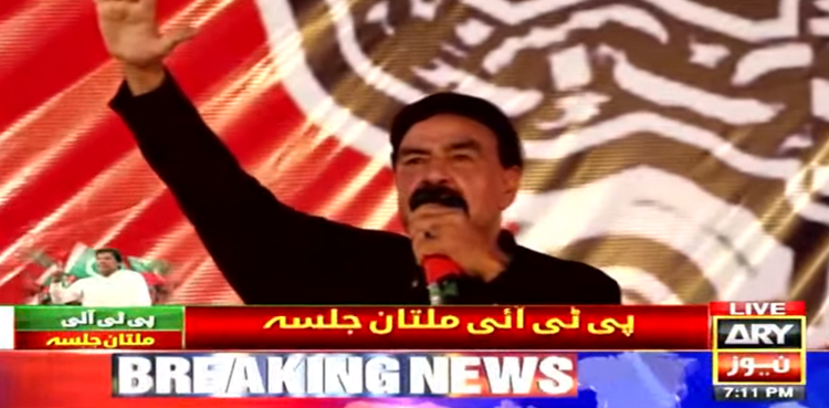 ملتان میں پی ٹی آئی کے جلسے سے خطاب کرتے ہوئے شیخ رشید نے کہا کہ عمران خان کو وزیر اعظم بنوانے کے لیے ایک ووٹ بہادر آباد سے مفت لے آؤں گا، ایک ووٹ کا مسئلہ ہے، بیس کروڑ کا ریٹ ہے، جان پر کھیل جاؤں گا، عمران خان کہیں تو آج ہی بہادر آباد چلا جاؤں۔