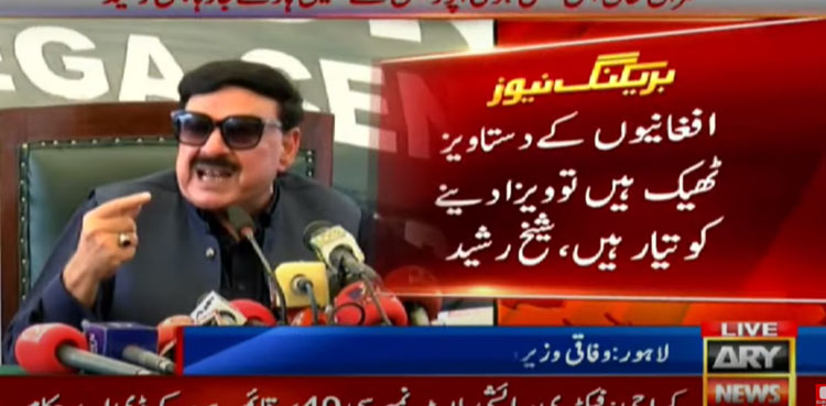 راولپںڈی : وفاقی وزیر داخلہ شیخ رشید نے افغانستان سے پاکستان آنے والے غیر ملکیوں کو اکیس دن کا آن ارائیول ویزا جاری کرنے کا اعلان کرتے ہوئے کہا جن افغانیوں کےدستاویز ٹھیک ہیں ویزا دینے کیلئے تیار ہے۔