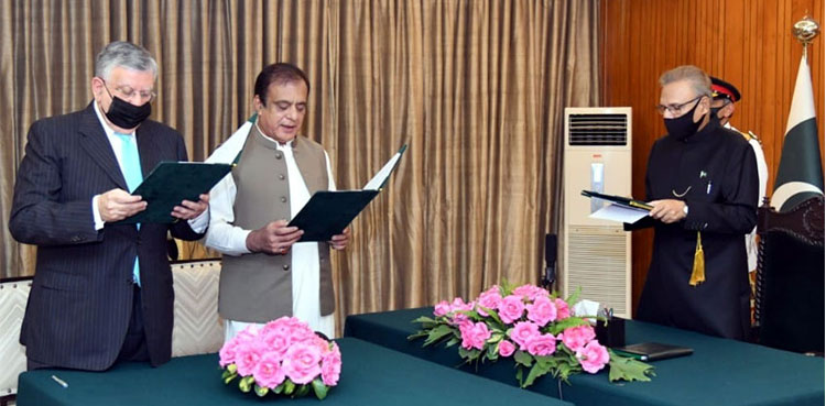 تفصیلات کے مطابق ایوان صدر اسلام آباد میں وفاقی وزرا کی حلف برداری کی تقریب ہوئی، جس میں کابینہ میں شامل ہونے والے شوکت ترین اور شبلی فراز سے صدر مملکت عارف علوی نے حلف لیا۔